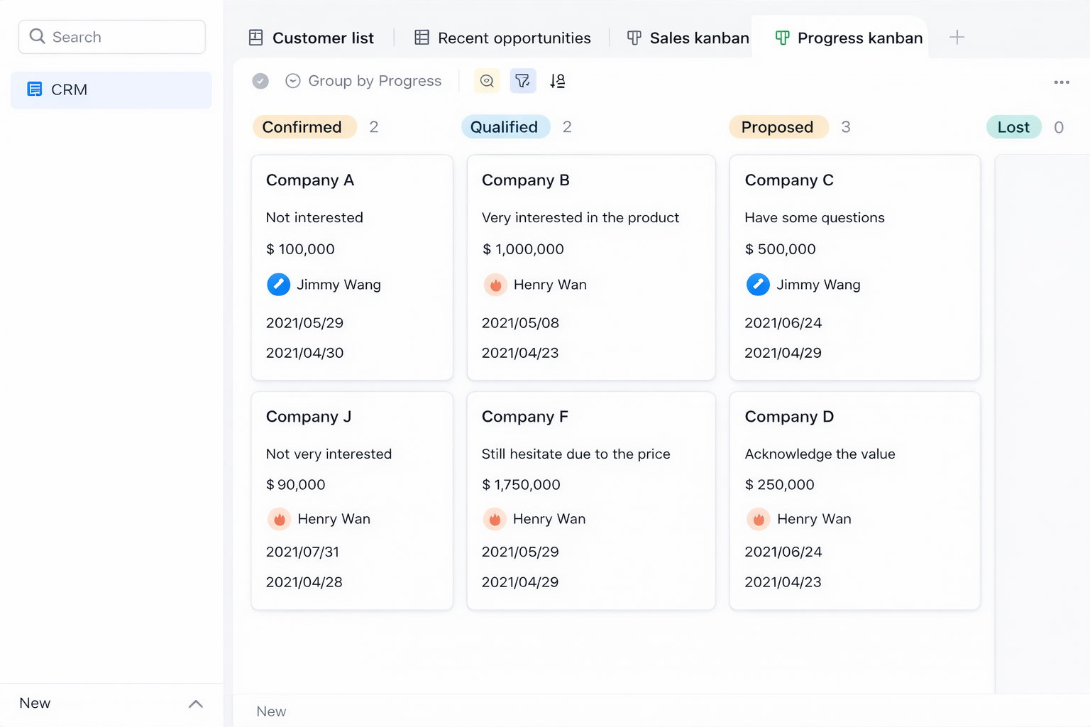 Memulai dari nol bisa terasa berat. Karena itu, Lark menyediakan berbagai template gratis yang sepenuhnya bisa dikustomisasi agar Anda dapat mengaktifkan mobile CRM dalam waktu singkat. Anda bisa langsung pakai atau menyesuaikannya sesuai proses bisnis Anda.